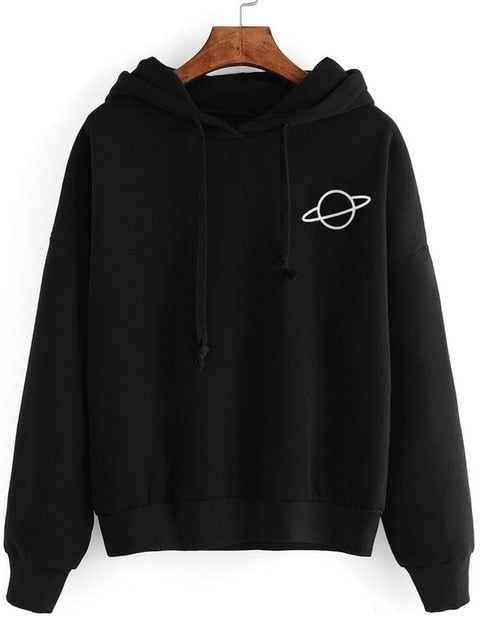 Women's Sweatshirt Women Hoodies Casual Planet Print Solid Loose Drawstring Sweatshirt Fashion Long Sleeve Hooded Female Tops